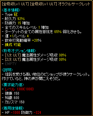 オラクルを選んだ理由としては、致命打率が付いてるからです。